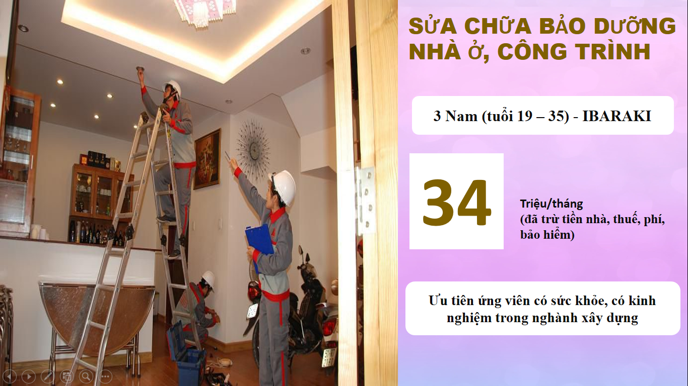Công việc chính của lao động là sửa chữa nội ngoại thất cho nhà ở