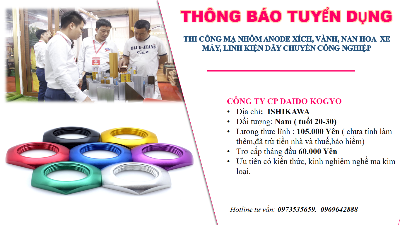 Gấp…Gấp.,,Gấp Công ty đang cần tuyển gấp 10 nam nghành mạ nhôm ANODE Phí đi