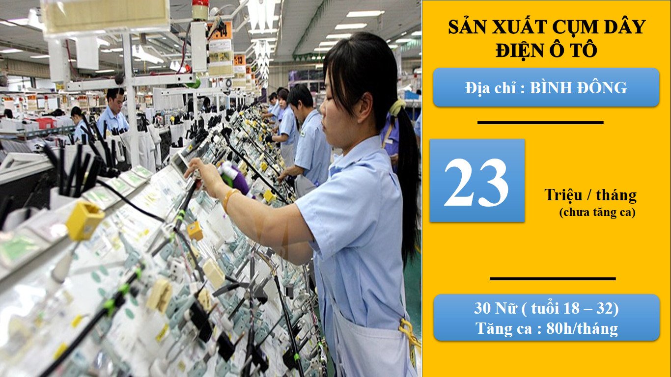 THÔNG BÁO công ty đang cần tuyển gấp 10 Nữ Sản xuất linh kiện điện