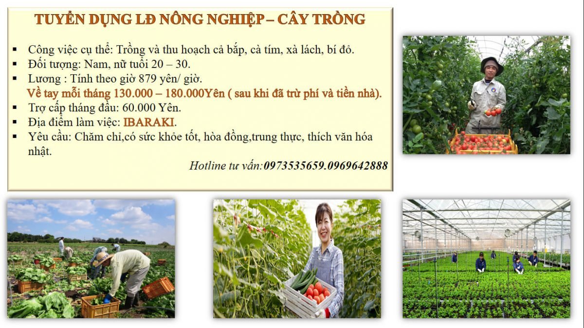 Lao động Việt Nam được các xí nghiệp Nhật Bản đánh giá cao bởi sự chịu khó, ham học hỏi và chịu được vất vả của công việc. Nông nghiệp là ngành có sự tương đồng nhất trong các đơn hàng bởi nước ta là nước có tỷ lệ kinh tế nông nghiệp chiếm gần 1 nửa nên đa số người dân đều làm nông . Vì vậy, khi sang làm việc tại Nhật Bản, sẽ không bị bỡ ngỡ và tiếp thu công việc rất nhanh chóng.